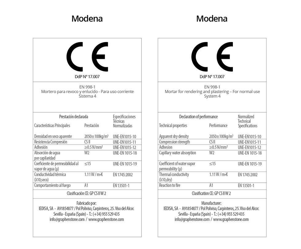 | IEdiSA, manufacturer of Graphenstone products, has implemented an Integral Management System according to UNE-EN ISO 9001: 2000, ISO UNE-EN 14001 and has been registered by AENOR and IQNet with the Company Registration number ES-0610/2013, ES-2013/0248 and GE-2014/0040 respectively. |
